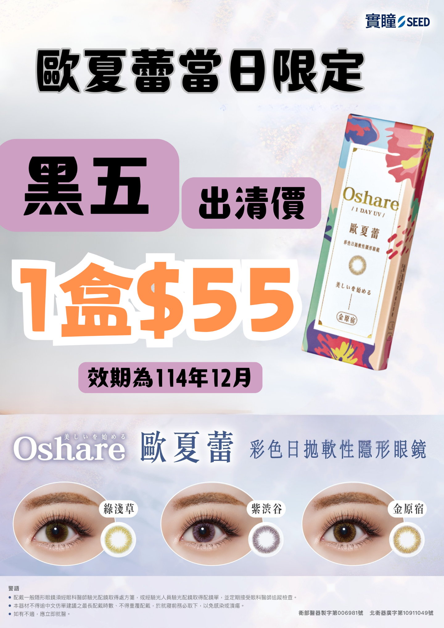 114.11.28日14:55分止歐夏蕾最後出清短效1盒$55歐夏蕾最後出清短效1盒$55(效期一個月)