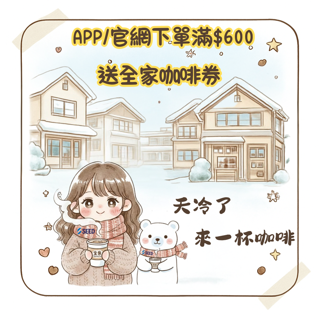 天冷了來一杯咖啡☕115.12.06-12.14日止APP/官網下單滿$600送全家咖啡券一張(不累進不累積送完為止)